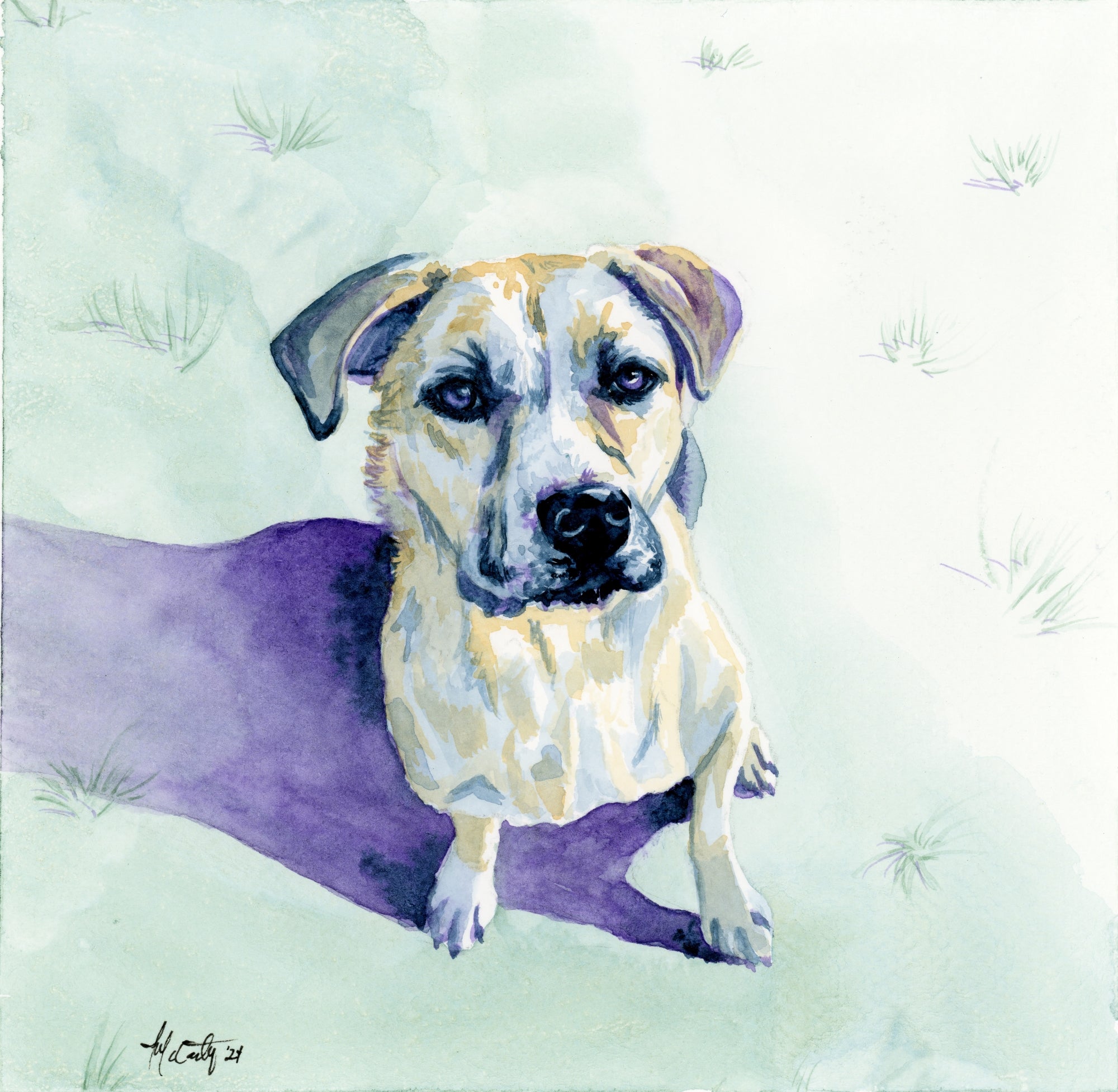 Rigley in his prime was a great running, hiking, camping, and cuddling companion. The movement in the shadow in this second piece highlights the passing of time. "Now I will get to see him every morning and every evening. Makes me happy." - Mary